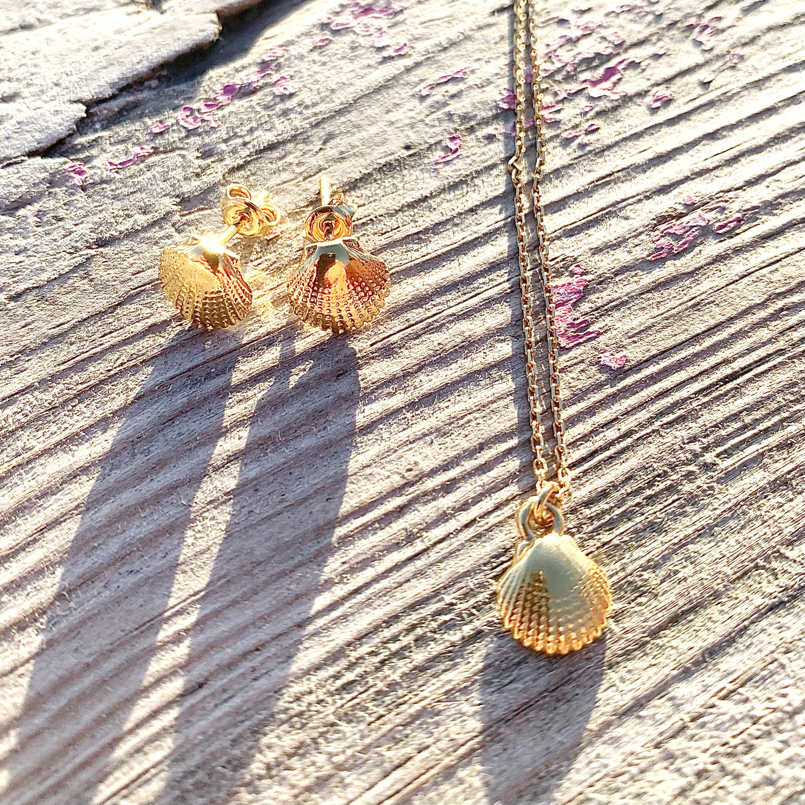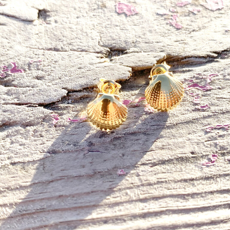KOLEKCJA MUSZLE Pozłacane kolczyki z muszlami wykonane z wysokiej jakości srebra próby 925.