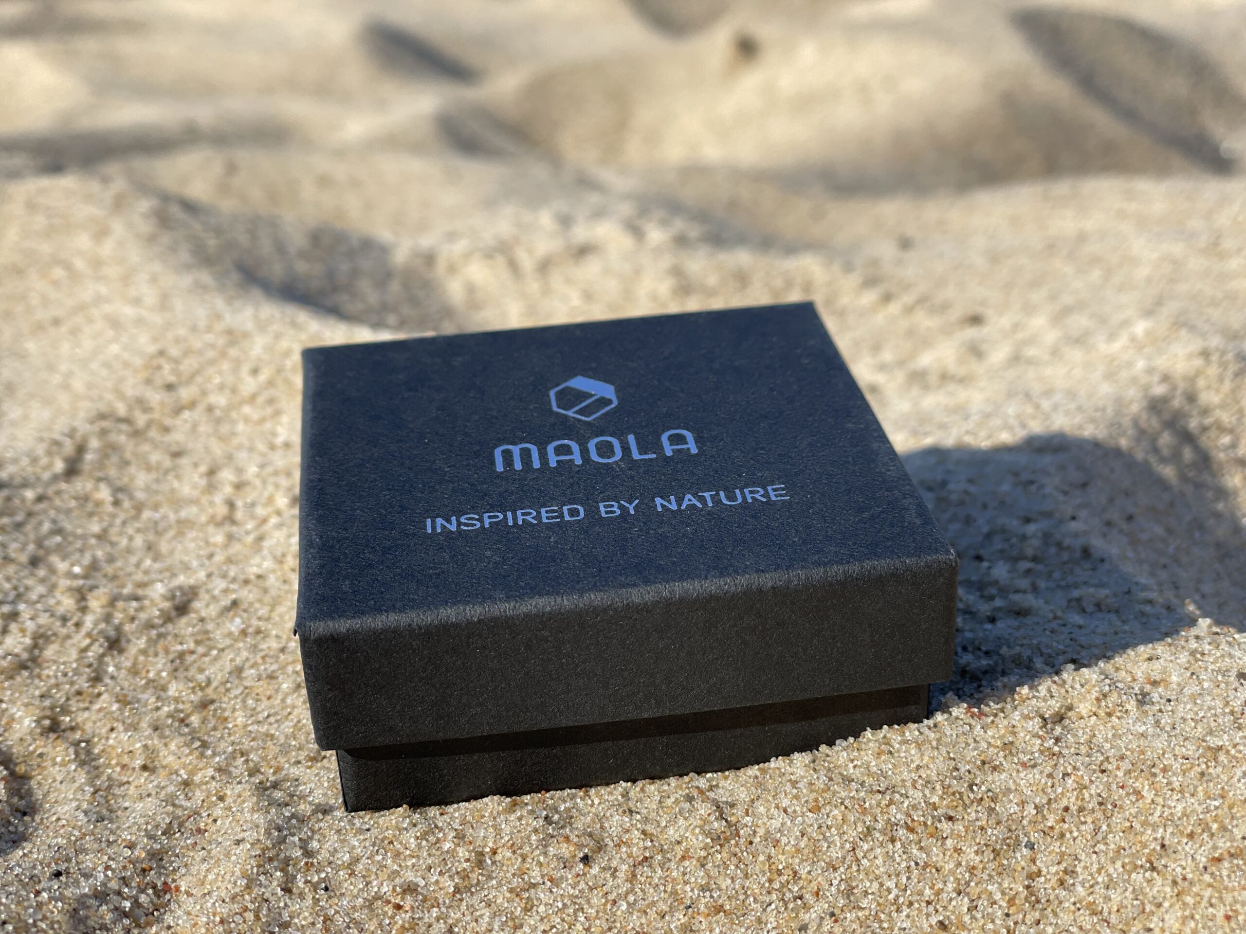 Zapakowane w ekologiczne pudełko z logo marki MAOLA.